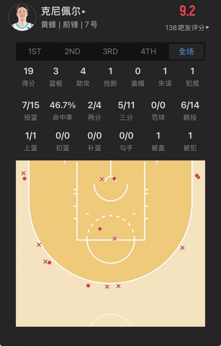 黄蜂4号秀 康-克尼佩尔 登场27.2分钟