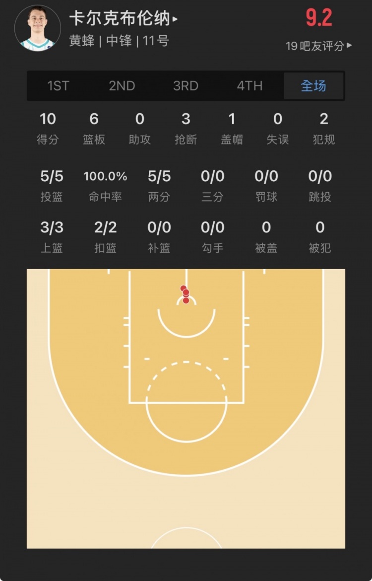 黄蜂34号秀 瑞安-卡尔克布伦纳 登场30.9分钟