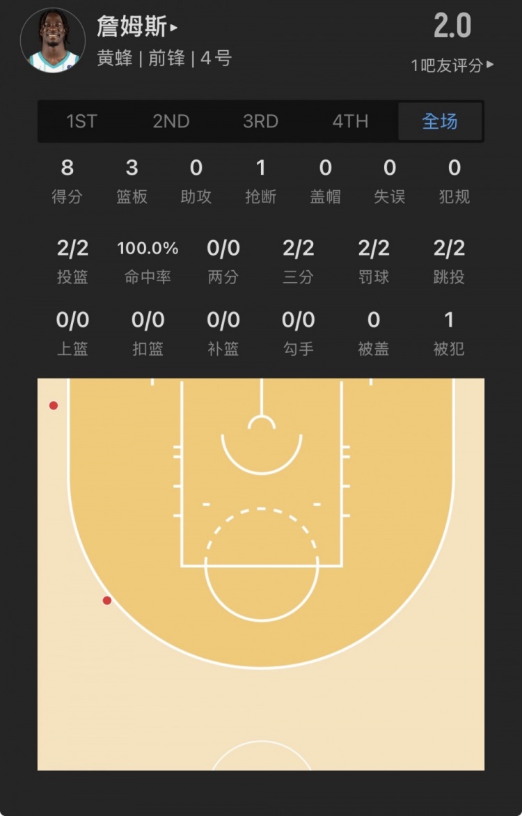 黄蜂33号秀 赛恩-詹姆斯 登场23.3分钟