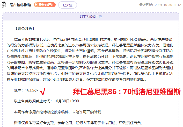 解锁内容包括:综合分析+比赛建议(数据观点+附加观点)