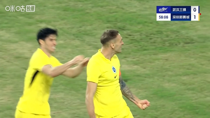 直播吧10月24日讯 中超第28轮,武汉三镇vs深圳新鹏城。比赛第58分钟,杜加利奇包抄破门,10人新鹏城客场2-0领先三镇!VAR长时间核实后认定进球有效。