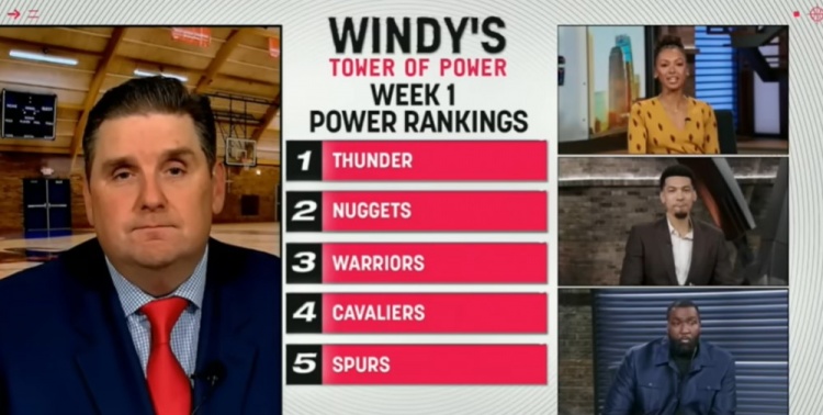 直播吧10月30日讯 今日名记Brian Windhorst在《NBA TODAY》节目中评出了自己心目中新赛季首周实力Top5。