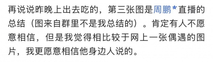 其团队成员周鹏开了直播谈及此事,有网友总结了直接内容(暂未搜到直播录屏)————周鹏称杨瀚森那天是吃晚饭而不是夜宵。店里有烤肉和芝士排骨,但杨瀚森都没吃。吃的是清汤,没放辣椒油。