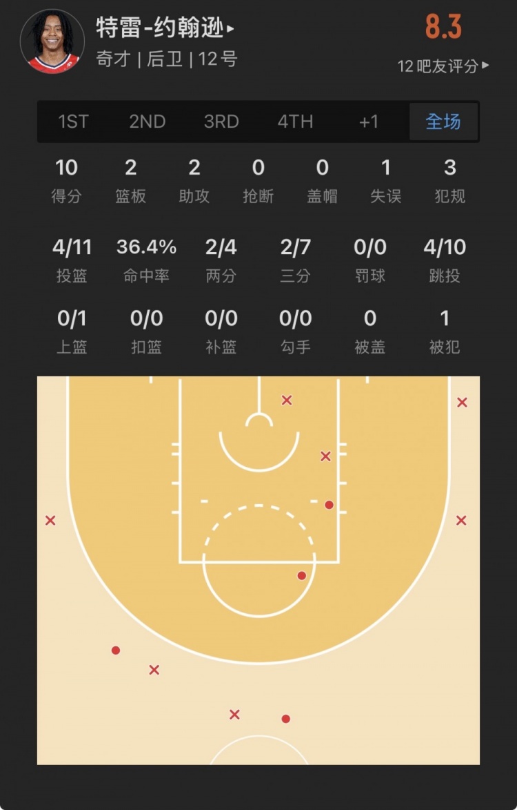 奇才6号秀 特雷-约翰逊 登场25.8分钟