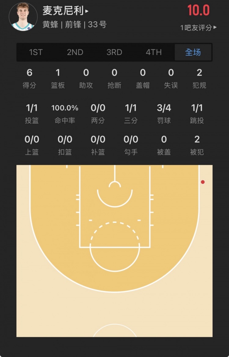 黄蜂29号秀 利亚姆-麦克尼利 登场10.9分钟