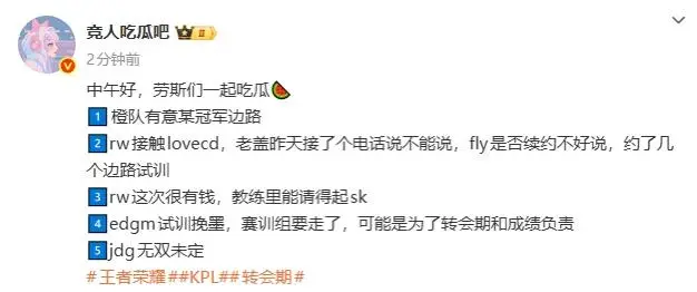 2、rw接触lovecd,老盖昨天接了个电话说不能说,fly是否续约不好说,约了几个边路试训