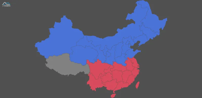2、红色地区为中国南方地区,包括:东南/中南/华南/西南,20支球队,每年一月初~七月底比赛,选出十支晋级球队(淘汰10支),