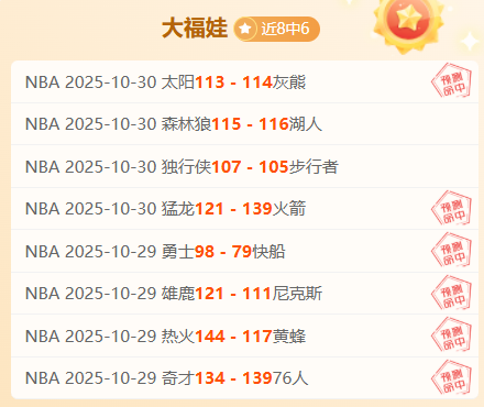 【上期回顾】昨专场NBA再添胜利,近8胜6连胜解锁,专场NBA本期赛事全力出击赛场解读有关剧本走势!福娃给出的数据分析能够高度精准把握赛事走向并识破有关数据的剧本伎俩,时刻关注数据的变动,本期结合冷热数据解锁胜利走向为大家送上专业的分析,把握好精选场次携手走上胜利的道路。