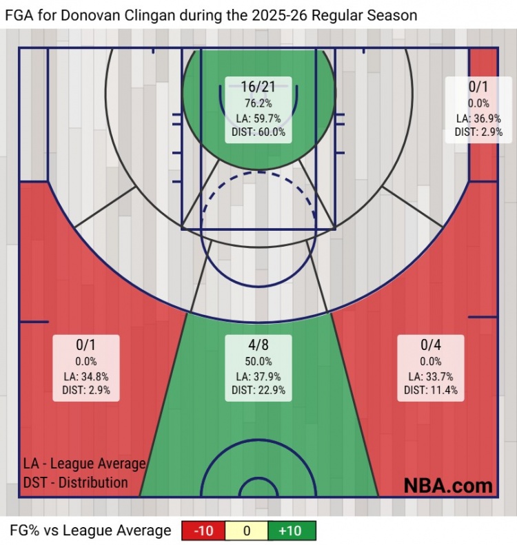 而现在,克林根正拓宽自己的优势领域,9投8中的罚球足以告慰亡母,三分球虽然准头欠佳,却也在以场均2.8次出手的频率冲破舒适圈,而在三分准头拖后腿的前提下,他的篮下内命中率从59.4%暴涨到了76.2%,就连场均助攻也有了质的飞跃。
