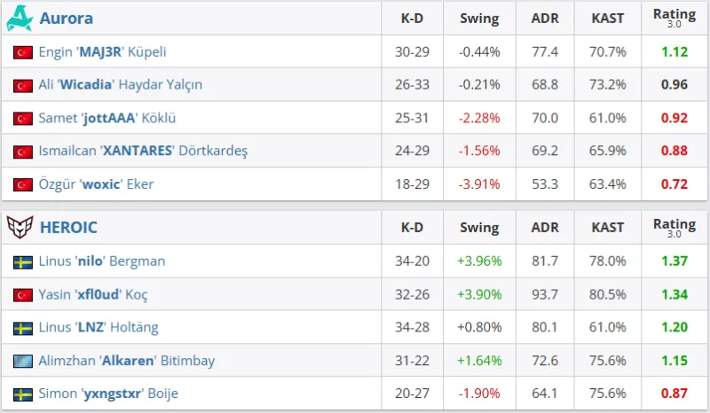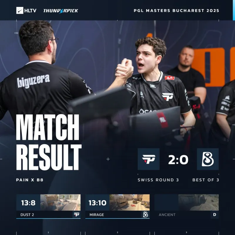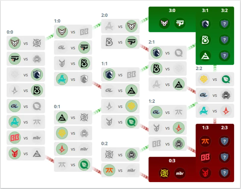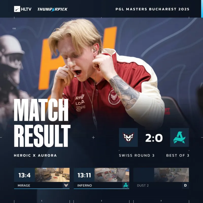 HEROIC与paiN在第三日分别战胜Aurora和B8,以三连胜率先出线晋级淘汰赛八强;NIP和MIBR则惨遭三连败垫底出局。