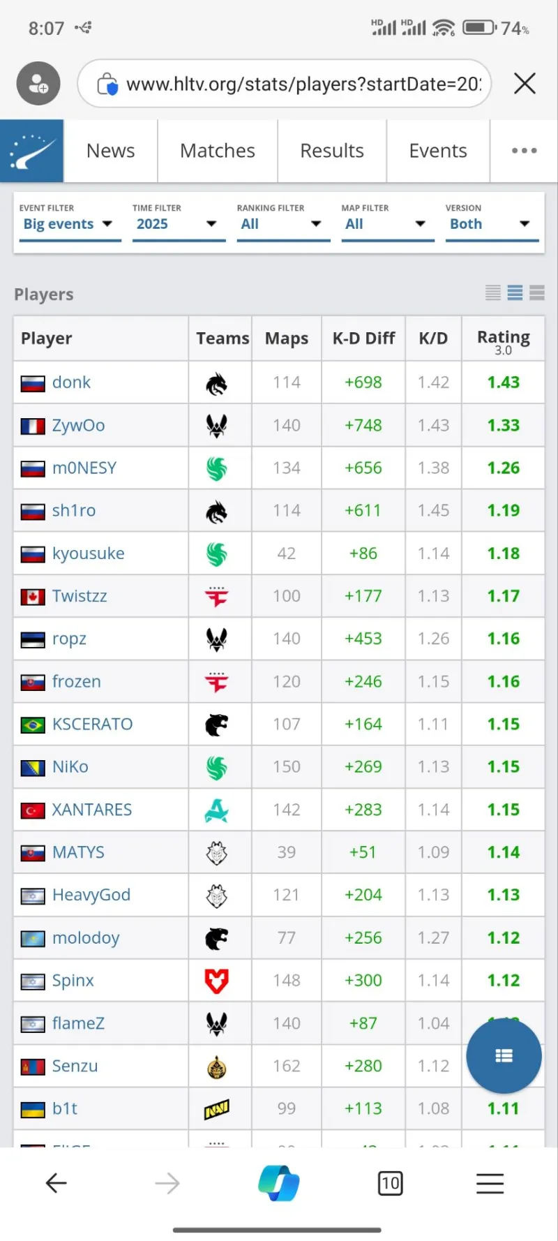 上调击杀比重,上个赛事monesy和zywoo的rating差距从0.1缩小至0.06