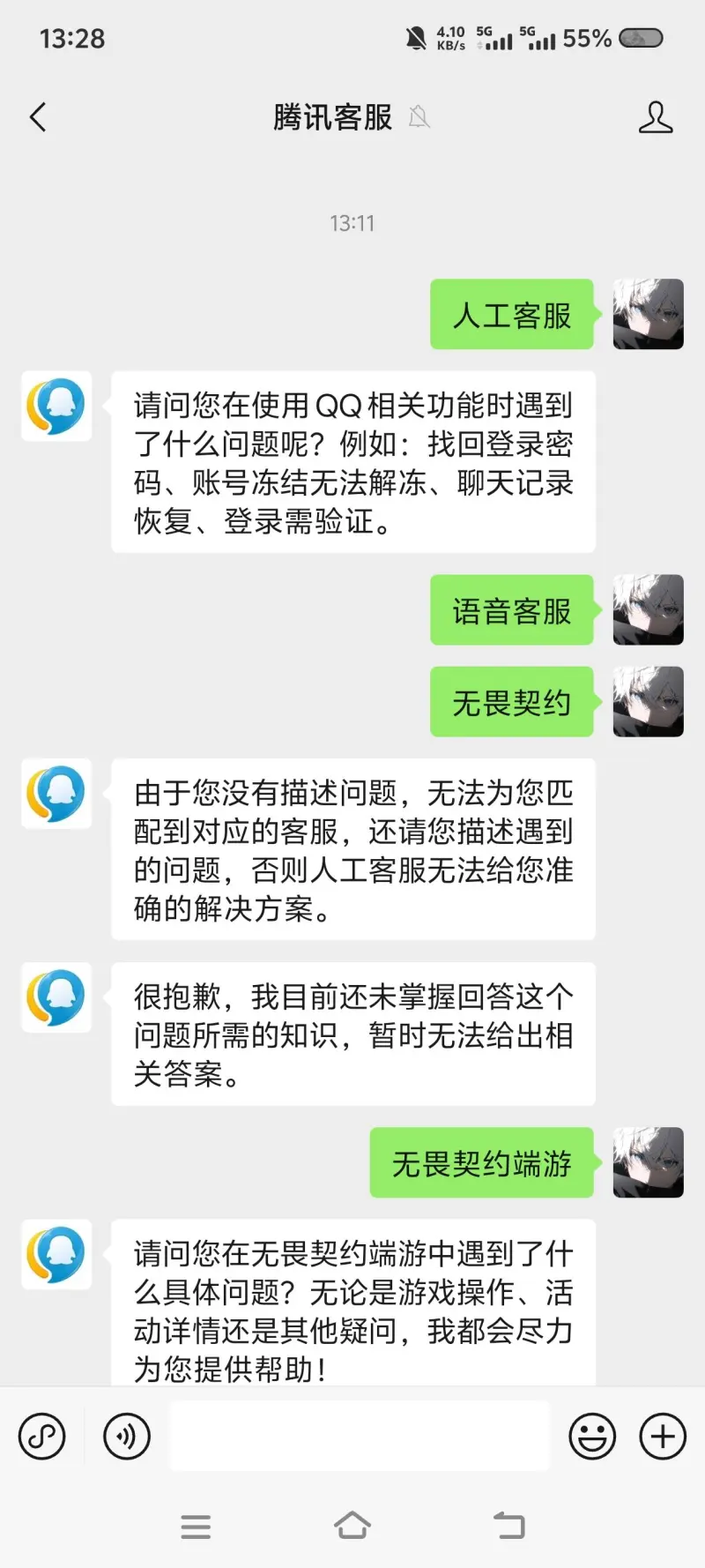无畏契约客服工作方式:先是客服沟通不理你,然后偷偷等五分钟隔一段时间直接自己结束,13点11分发的不理你,然后等13点25分突然发一段话,结束