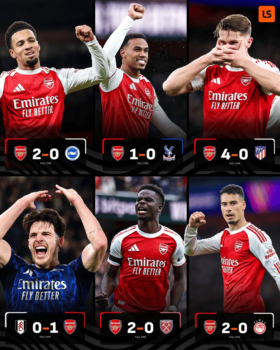 根据Live Score的统计,阿森纳已经取得了各项赛事的八连胜,而且10月份的6场比赛里一球未失。