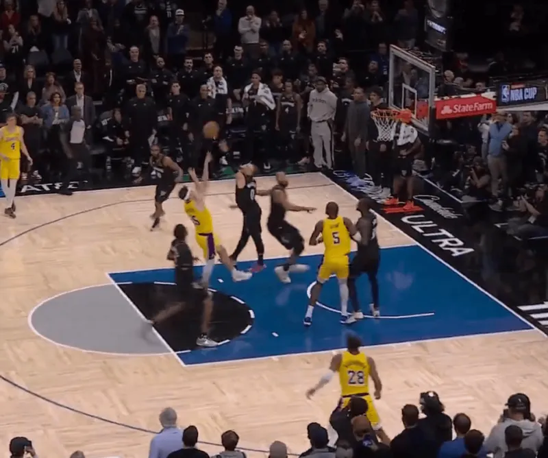 比赛最后时刻,里夫斯罚球线抛投命中完成压哨绝杀,湖人1分险胜森林狼。