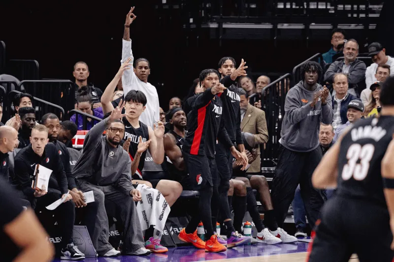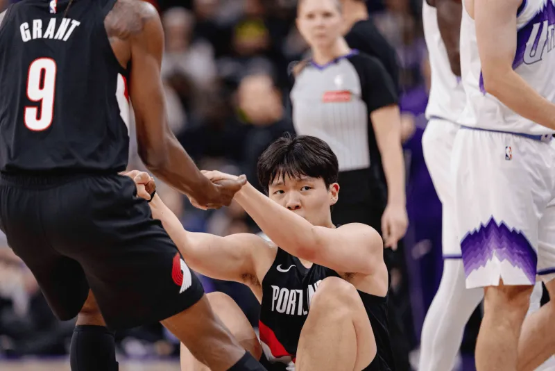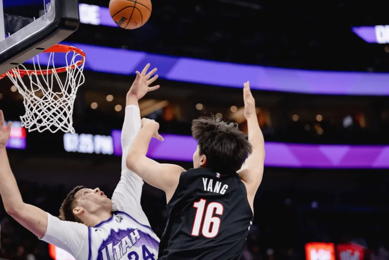 [流言板]开拓者官方晒出今日比赛图集:杨瀚森对位凯斯勒勾手打进
