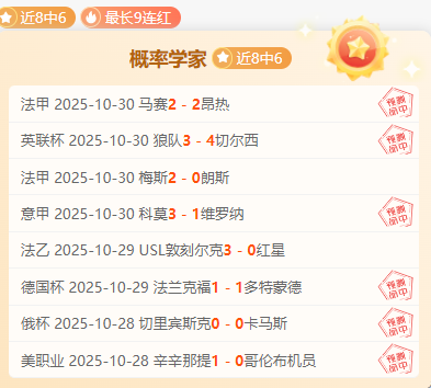 战绩回顾:近8胜6,状态相当理想。大家可以点点关注,建议不要单单挑选某一场比赛,某一篇文章,要留意概率送出的每一场比赛,这样就可以更好地与概率同步,可以长期取得正向的收获。