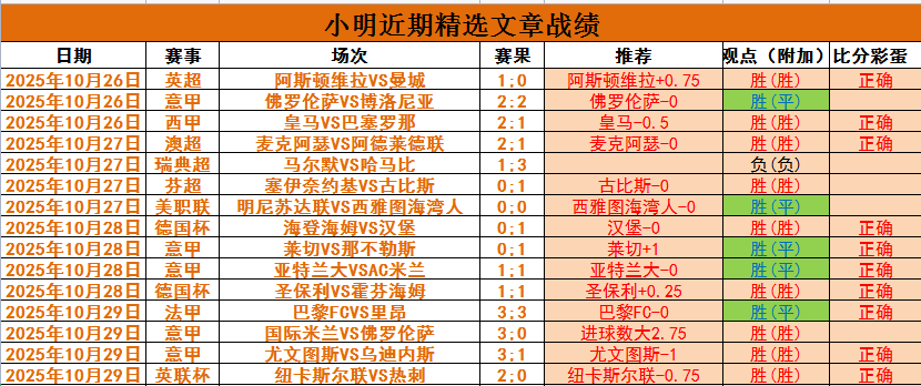 【上期回顾】再次全胜!昨整体5中5,精选4中4,国米大、尤文、纽卡打出,法甲打平。近14中13。赞赏1胜1,摩纳哥打出,赞赏12胜9。昨又又又全胜,本周精选9中8,正确率高达89%,朋友们点个赞,我们继续冲!