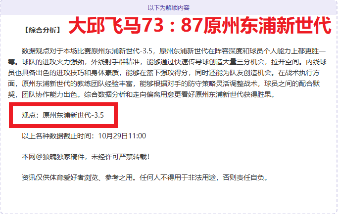 解锁内容包括:综合大数据分析+分解赛事走向+比赛建议+作者观点数据