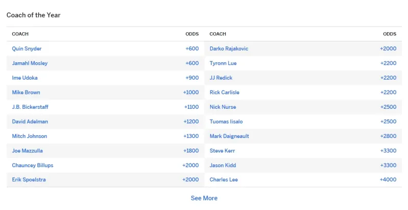 根据此前的数据,赛季前魔术主教练贾马尔-莫斯利在ESPN的最佳教练赔率榜上高居第一。